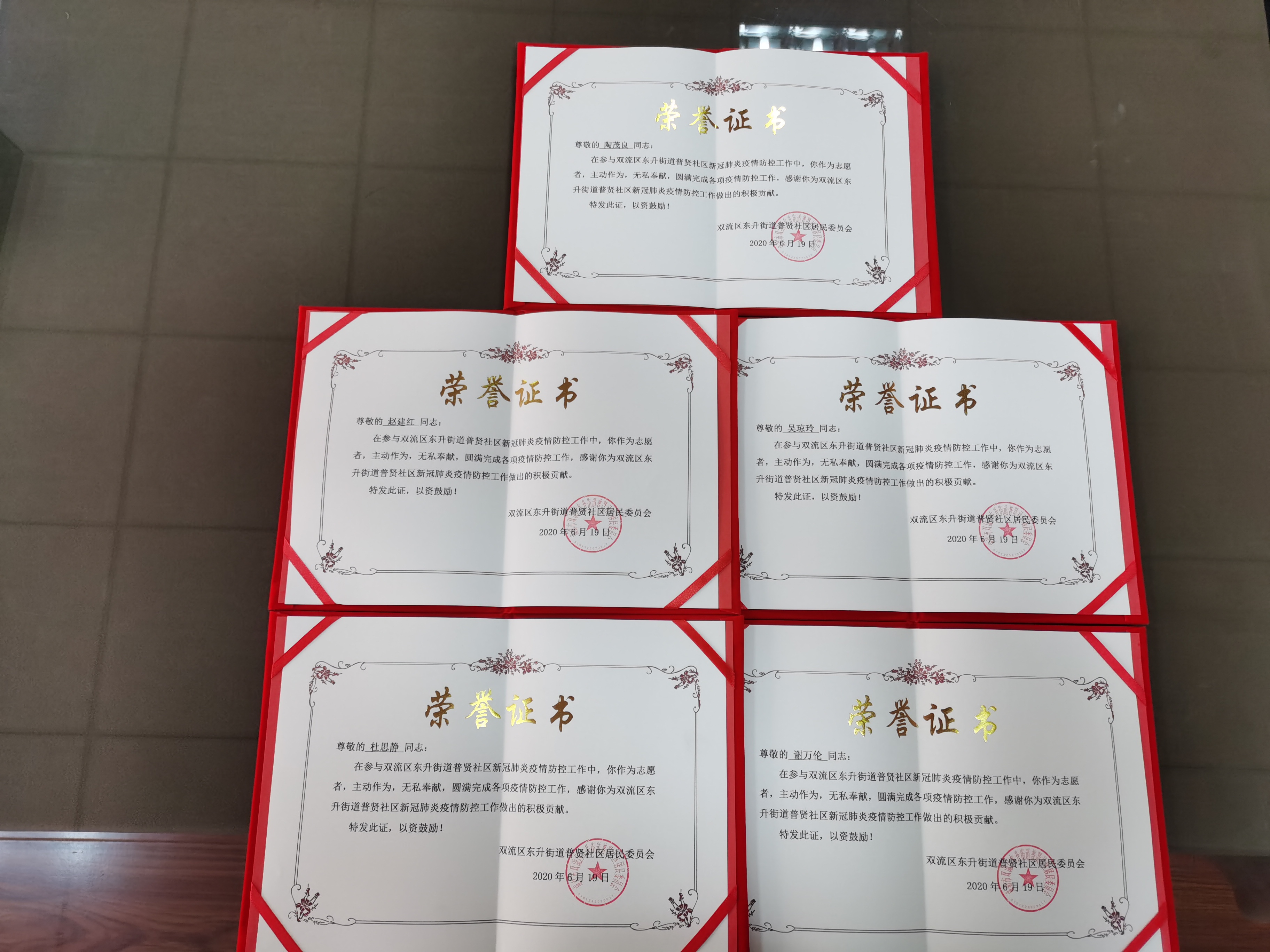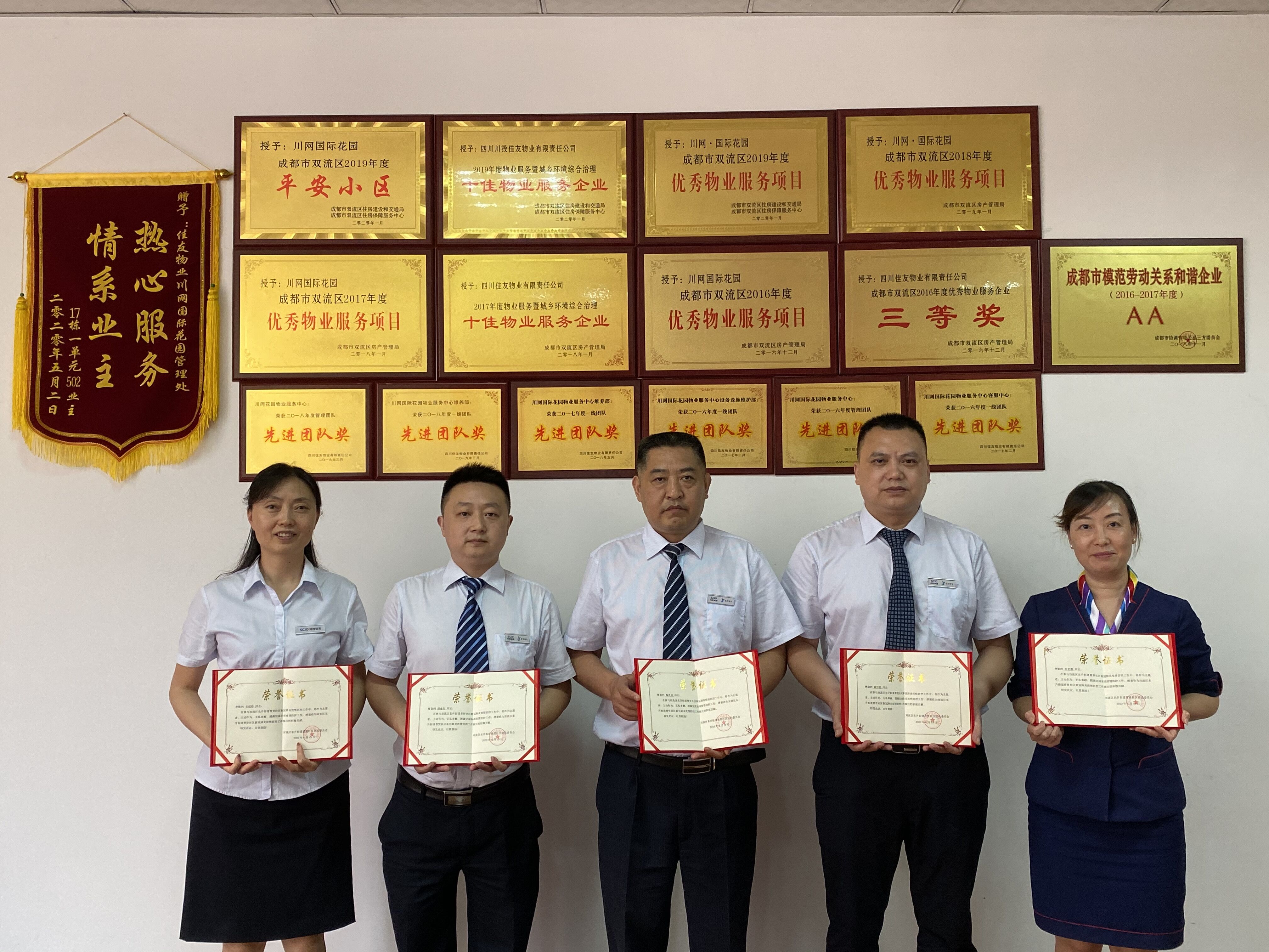 疫情防控期間,社區(qū)專門派駐了工作人員駐小區(qū)進(jìn)行防控指導(dǎo),通過東升街辦和駐項(xiàng)目工作人員的考察舉薦和實(shí)際工作表現(xiàn),川網(wǎng)國(guó)際花園物業(yè)服務(wù)中心5名員工獲得了表彰。近日,普賢社區(qū)紀(jì)委書記和工會(huì)主席專門到項(xiàng)目進(jìn)行了通報(bào),并為表現(xiàn)突出的同志頒發(fā)了榮譽(yù)證書,激勵(lì)大家繼續(xù)為屬地做好疫情防控工作貢獻(xiàn)自己的一份力量。